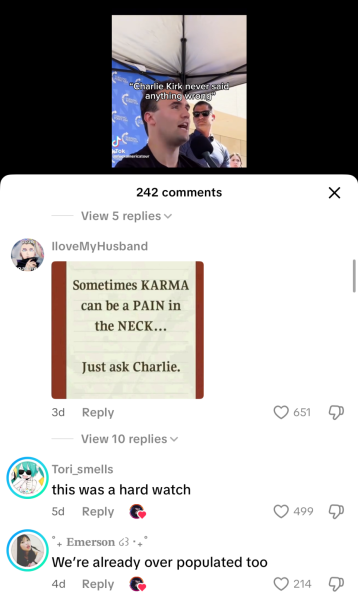 Out of breath, I walked into my first class after lunch. Sweat dripped down my face while I took my million-pound backpack off. Before I could sit down, my friend next to me shoved her phone into my face, “LOOK!” Alarmed, I pulled back and took a closer look. The post read “Charlie Kirk 1993-2025.” The classmate to my left whispered excitedly, “I honestly don’t feel bad that he’s dead; he kinda had it coming.” The other agreed in a more monotone fashion, “Yeah, I’m glad.”